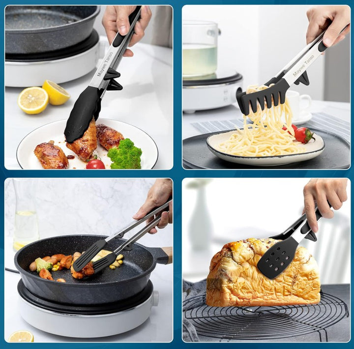 SILICONE KITCHEN SET: Our black tongs set includes:
